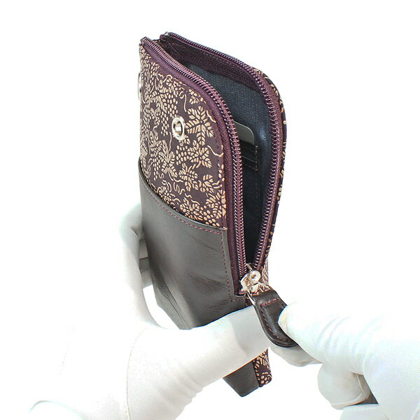 印伝 【甲州印伝・印傳屋】スマホポシェット スマホケース スマホ入れ【5027】【ぶどう】【紫地×白漆】【男性用・女性用】【メンズ・レディース】【和柄】【YM01】