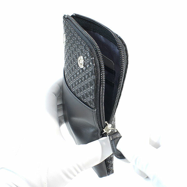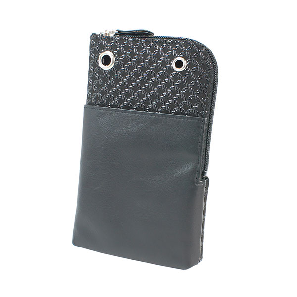 印伝 【甲州印伝・印傳屋】スマホポシェット スマホケース スマホ入れ【5027】【輪繋ぎ小】【黒地×黒漆】【男性用・女性用】【メンズ・レディース】【和柄】【YM01】
