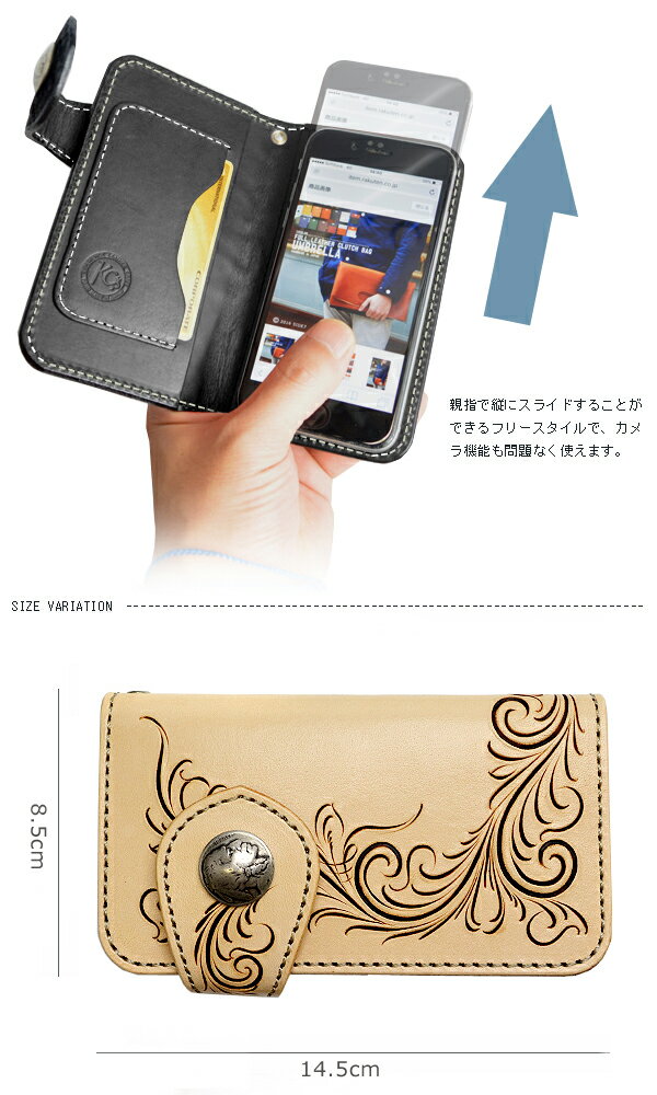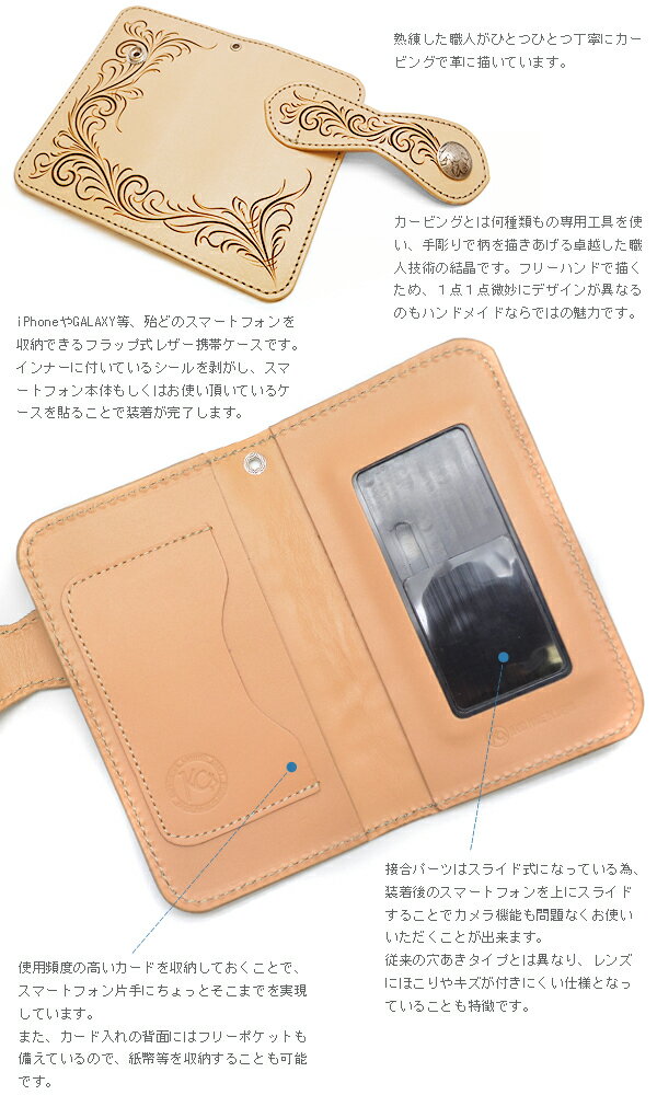 ケーシーズ KC'S ケイシイズ ケイシーズ kc,s kcs 携帯電話カバー アイレスト フリースタイル フリーカット iphone 5 5S 6 6S アイフォン GALAXY ギャラクシー 革 レザー 手彫り カービング アラベスク フラップ式 ハンドメイド お財布 ケータイ 手帳型 和柄 牛革 本革 国産