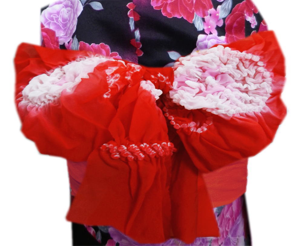 子供用ふわっふわ絞り兵児帯へこ帯赤色地薄ピンク キッズ女の子用 浴衣&着物に 日本製