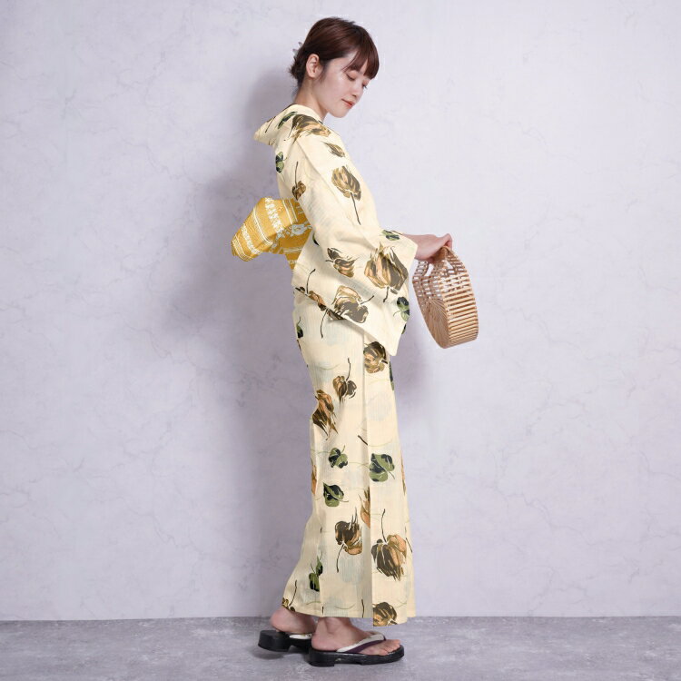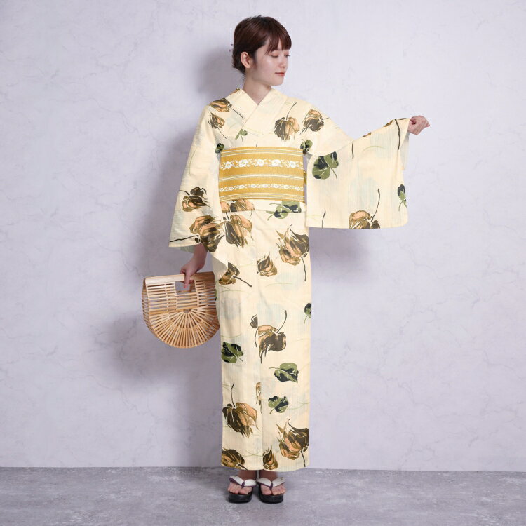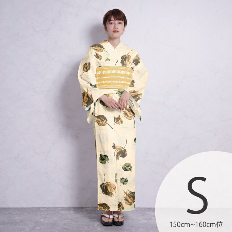【40%OFF】浴衣 セット レディース 浴衣 3点セット(浴衣/帯/下駄)ベージュ きなり 黄色 緑 ブラウン ほおずき 格子 鬼灯 ニコアンティーク Nico Antique 浴衣セット ゆかた 女性 レトロSサイズ プチサイズ 小さいサイズ