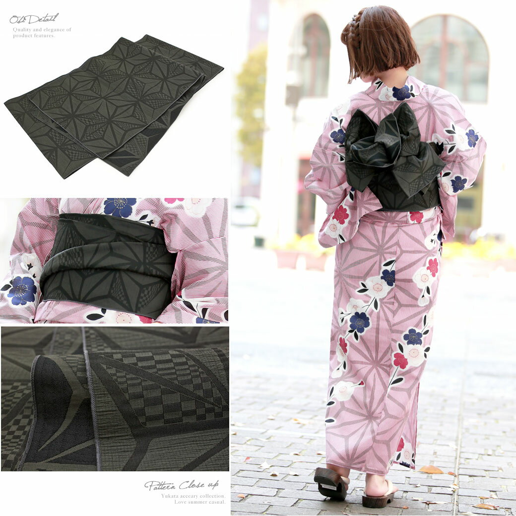 浴衣 セット レディース レトロ 浴衣セット 大人 3点セット 赤 レッド 黒 桜 花 麻の葉 縞 ラメ 綿麻 兵児帯 女性 ボヌールセゾン フリー 【送料無料】【あす楽対応】【浴衣 セット】