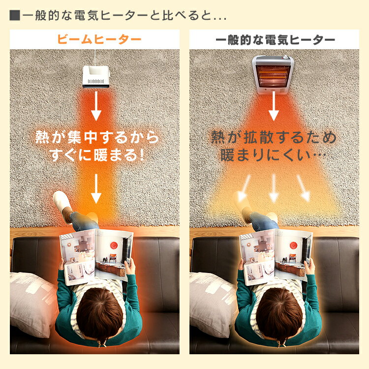 ●商品サイズ(cm)幅約23×奥行約18×高さ約25.3●商品重量約1.9kg●消費電力強:400W弱:200W●電源100V 50/60Hz●コード長さ約1.8m●運転モード強/弱 2段階●上下調整角度手動約20度●安全装置転倒自動電源OFF機能、温度ヒューズ、温度過昇検知サーモスタット●付属品取扱説明書(保証書含む)●保証メーカー保証1年間(検索用:電気ストーブ 暖房 足元 暖房機器 ストーブ ヒーター コンパクト 省エネ エコ 節電 びーむひーたー 節約 暖房家電 遠赤外線 小型 4562331900474)★